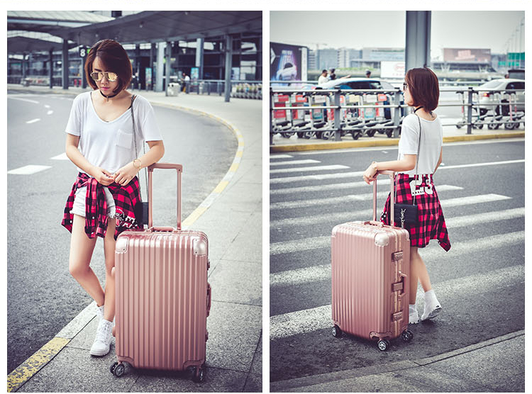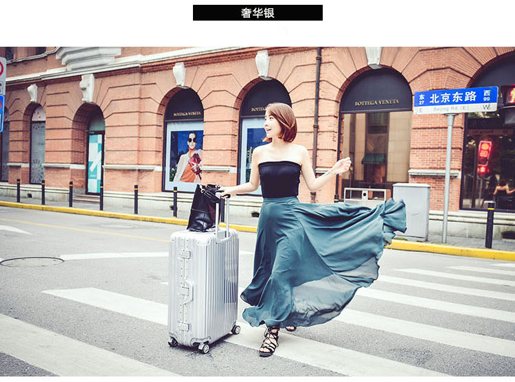 名稱:鋁框箱 型號:XB-26 尺寸:20英寸 35*24*49cm 24英寸 42*28*61cm 28英寸 48*29*69cm 材質(zhì):PC+ABS 鋁合金 顏色:商務(wù)銀 /玫瑰金